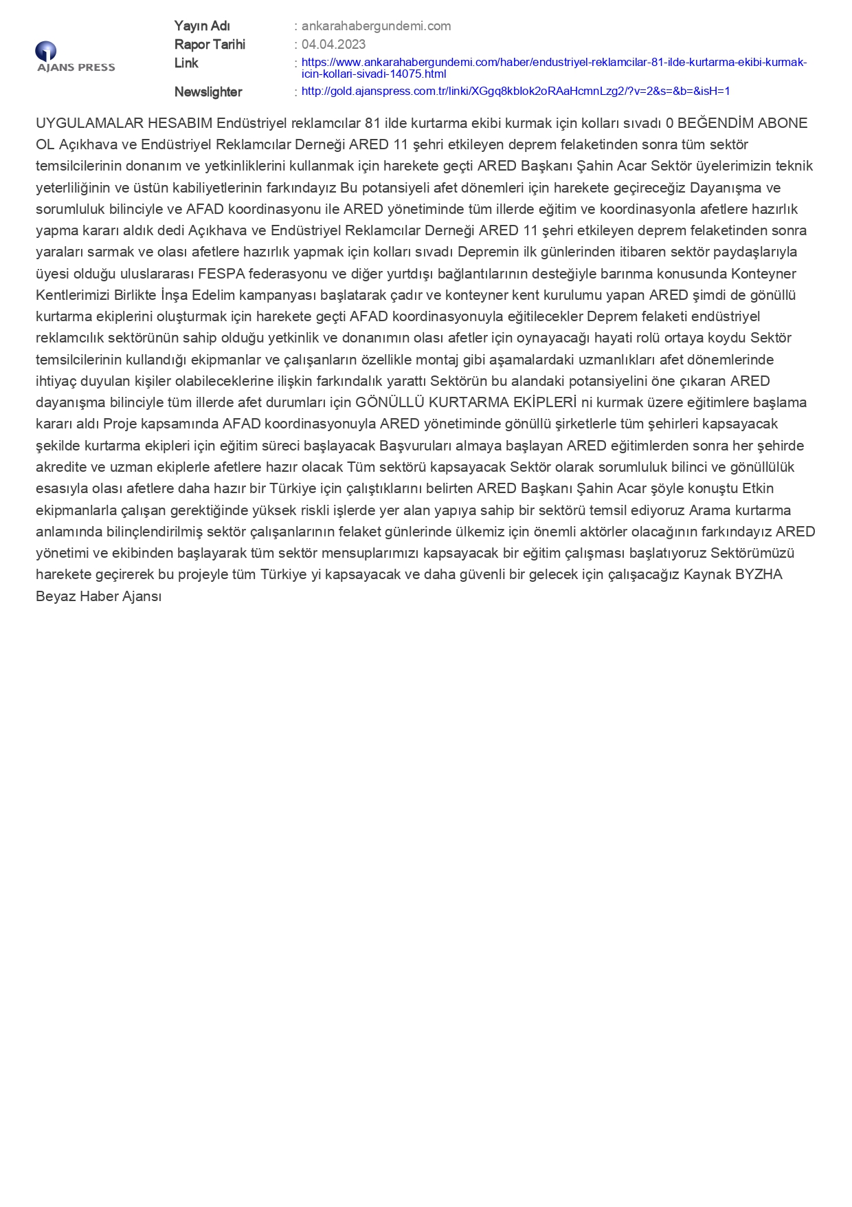 Endüstriyel Reklamcılar, 81 İlde Kurtarma Ekibi Kurmak için Kolları Sıvadı
